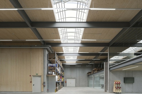 Für den Neubau in Elzach lieferten und montierten wir ein 25 m langes Lichtband mit Durchsturzschutz, zwei RWA-Klappen zur Entrauchung sowie integrierter Be- und Entlüftung für die über 1.000 m² große Logistikhalle. Ergänzend realisierten wir drei Flachdachfenster über dem Büro im OG für natürliche Belichtung und Lüftung.